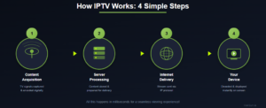IPTV works by converting television signals into data packets that are transmitted over the internet. Here’s a simplified breakdown of the process: